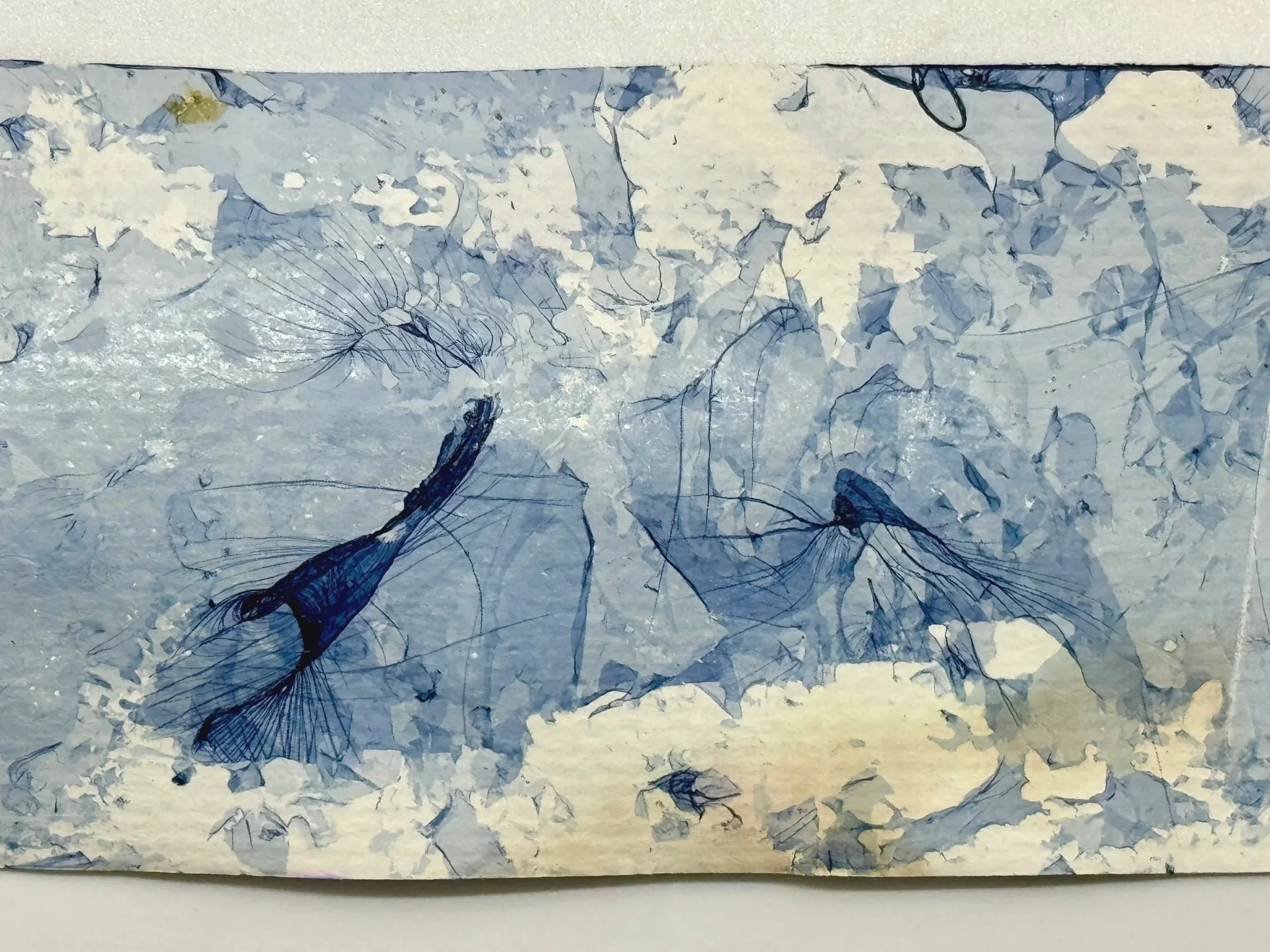 Paper marbling is magic: paint is splattered or laid upon a water-based surface where it sinks, floats, and moves with wind and other physical interactions. Paper prints the final resting place of the paint, revealing patterns that recall puddle reflections, aerial images, far away galaxies, and occasionally old books.